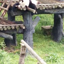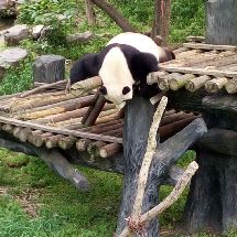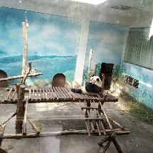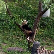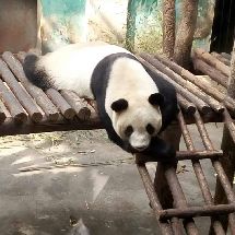 浩浩果真很活泼好动,一直很欢快地找笋,吃笋,进草丛里玩,追小鸟玩。在浩浩进水池玩的时候,解说员小哥一脸痴汉地说“大家快看!他正在玩水!快看快看!他在拨水!”比我还要激动。而朝阳就是在室内安稳地睡着。看他吃了一会儿笋又继续去睡了。睡觉的时候不停调整脸在木架间的位置,抬起头的时候脸上的毛都有痕了。听解说员小哥说,过段时间浩浩和朝阳约期到了之后,他俩会被送回四川。等到红山动物园大熊猫馆扩建之后,会再来一些新的大熊猫。希望在浩浩和朝阳回四川之前,我还能有机会多见见他俩QAQ